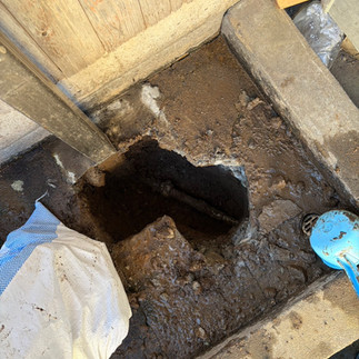 エンビ管(塩ビ管)が割れており、そこから水が漏れている状態でした。