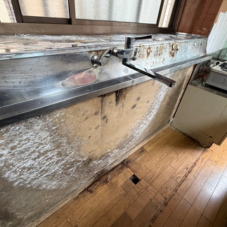 【那珂市】キッチン給水管の錆による漏水修理&壁面リフォーム工事