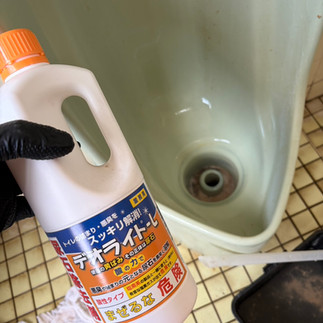 そこで今回は、デオライト(尿石除去剤)で付着物を溶かしながら、あわせて高圧洗浄機で排水ラインをしっかり洗浄し、通水状態とニオイを改善しました。